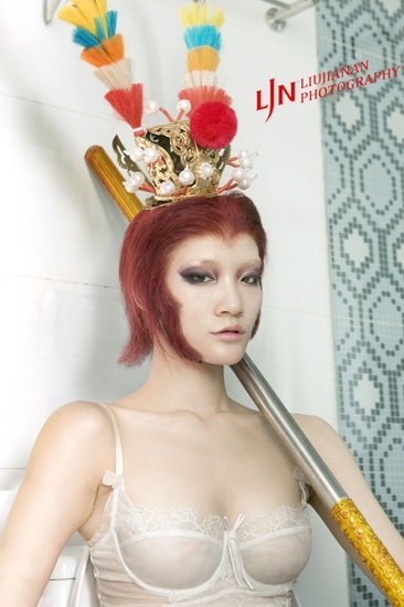 | Đây là một bộ ảnh thời trang được nhiếp ảnh gia người Trung Quốc lấy cảm hứng từ nhân vật Tôn Ngộ Không của Tây Du Ký. |