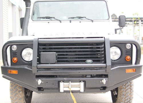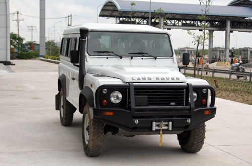 Defender 110 Hard Top được UK Auto đưa về Việt Nam có hệ thống tời kéo phía trước, cản trước vững chắc với bộ khung bảo vệ lưới tản nhiệt trước và đèn pha. Xe được gắn tấm thép bảo vệ động cơ phía dưới gầm và ống hút gió trên cao thường được sử dụng cho những chiếc xe địa hình. Bên trong, nội thất khá đơn giản với hệ thống điều hòa nhiệt độ, bảng điều khiển dễ quan sát với hai màu đen trắng tương phản. Thế mạnh của Defender 110 Hard Top là có khả năng vượt qua những địa hình đồi núi dốc cao, hay băng qua những con suối. Tại một số nước, Defender được trang bị cho lực lượng vũ trang.