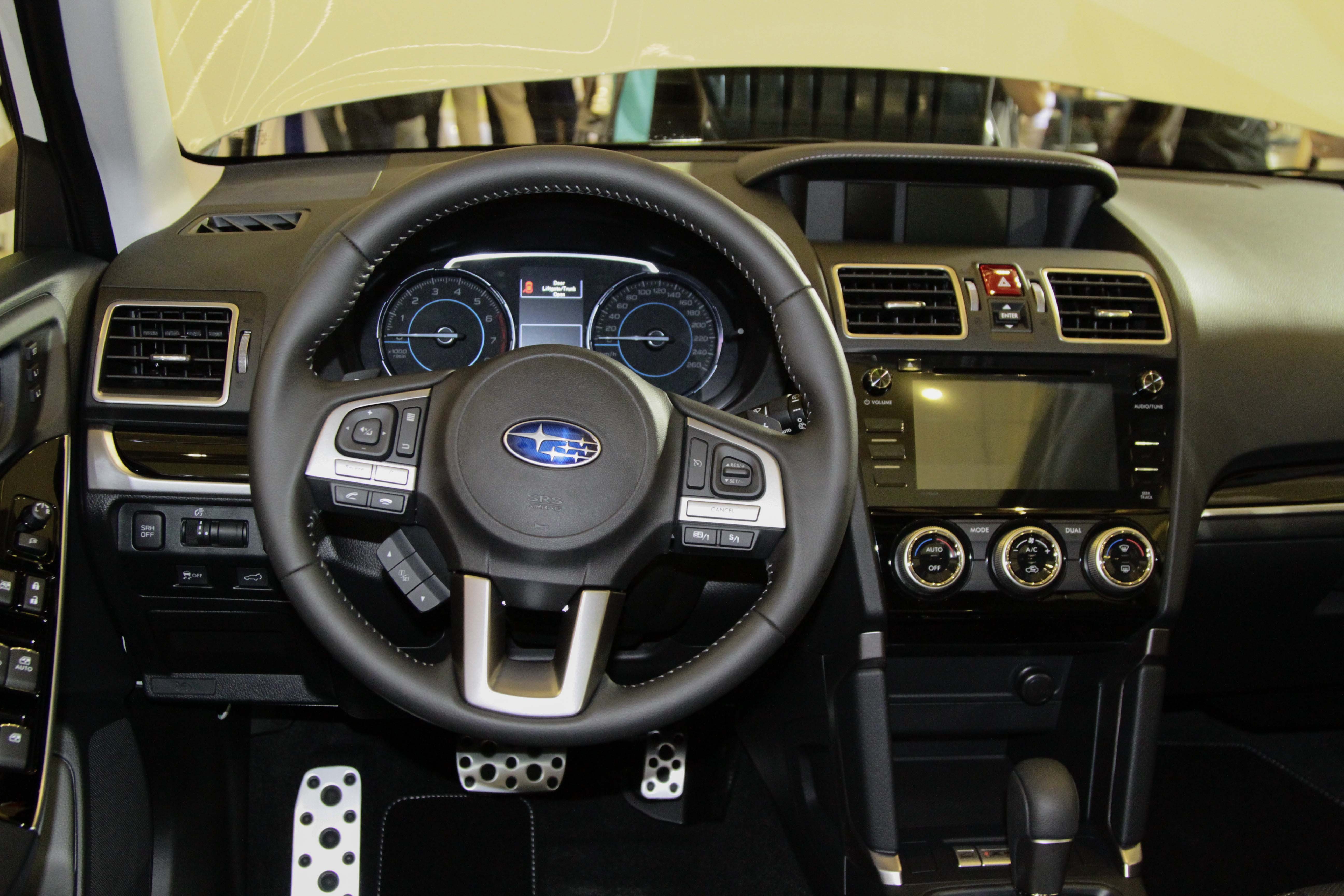 Vôlăng của Forester 2016 được bọc da thể thao tích hợp các nút điều khiển chức năng và có thể điều chỉnh 4 hướng. |
