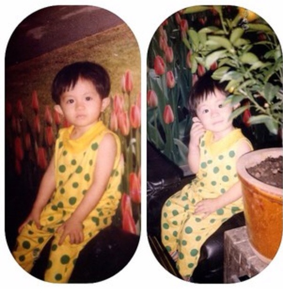 | Hot girl Mẫn Tiên nhắng nhít chụp hình. Dù không giống hiện tại nhưng cả hai hình ảnh đều dễ thương. |