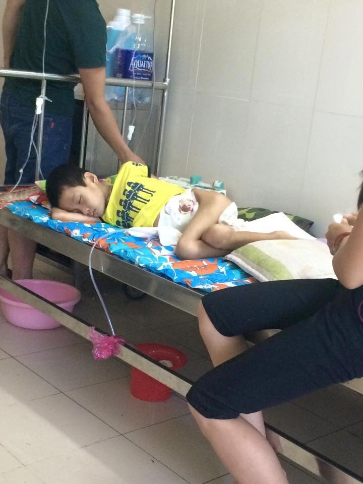| Tình trạng bé Tướng Văn Điệp sau khi bị anh trai vô tình bắn trúng hậu môn. Ảnh: Thùy Linh |