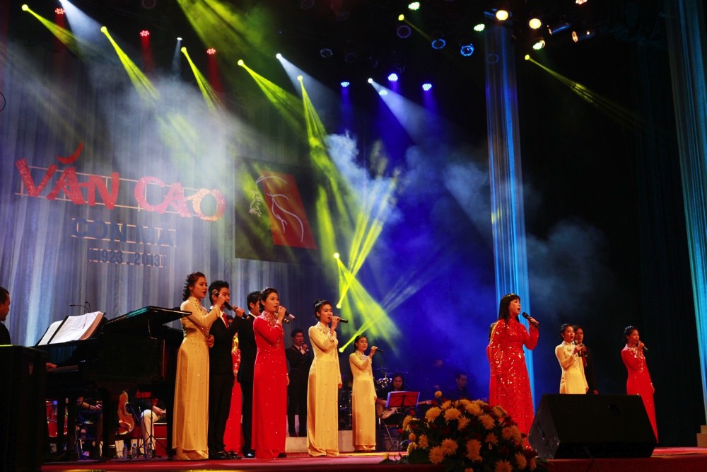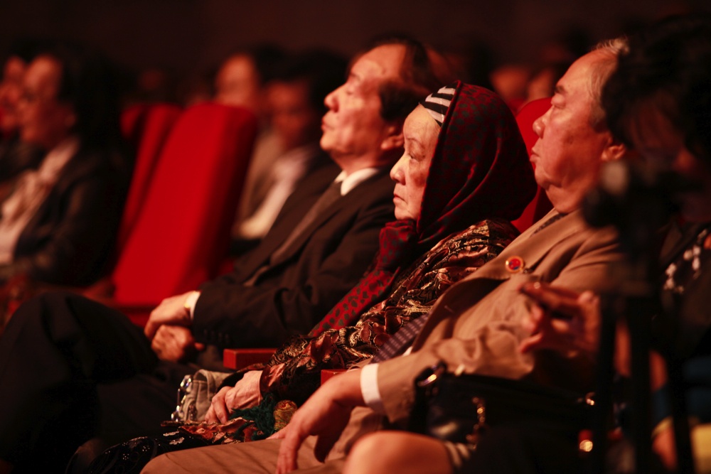 | Bà Nghiêm Thúy Băng - người phụ nữ đã gắn bó cùng nhạc sĩ Văn Cao qua bao nhiêu thăng trầm của cuộc sống - cũng có mặt trong đêm nhạc này. Bà lặng lẽ ngồi ở hàng ghế khán giả lắng nghe con trai chia sẻ về người chồng, người cha quá cố và trầm tư nghe các ca sĩ thể hiện sáng tác của chồng mình. Đêm nhạc Văn Cao còn có sự góp mặt của NSND Quang Thọ, nhóm Ngũ lão và dàn hợp xướng... |
