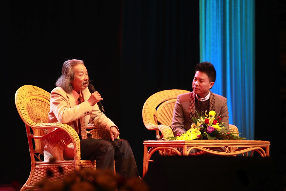 | Họa sĩ Văn Thao - con trai cả của nhạc sĩ Văn Cao - chia sẻ khá nhiều kỷ niệm thú vị về cha trên sân khấu. Những tâm sự của ông khiến khán giả vô cùng xúc động. |