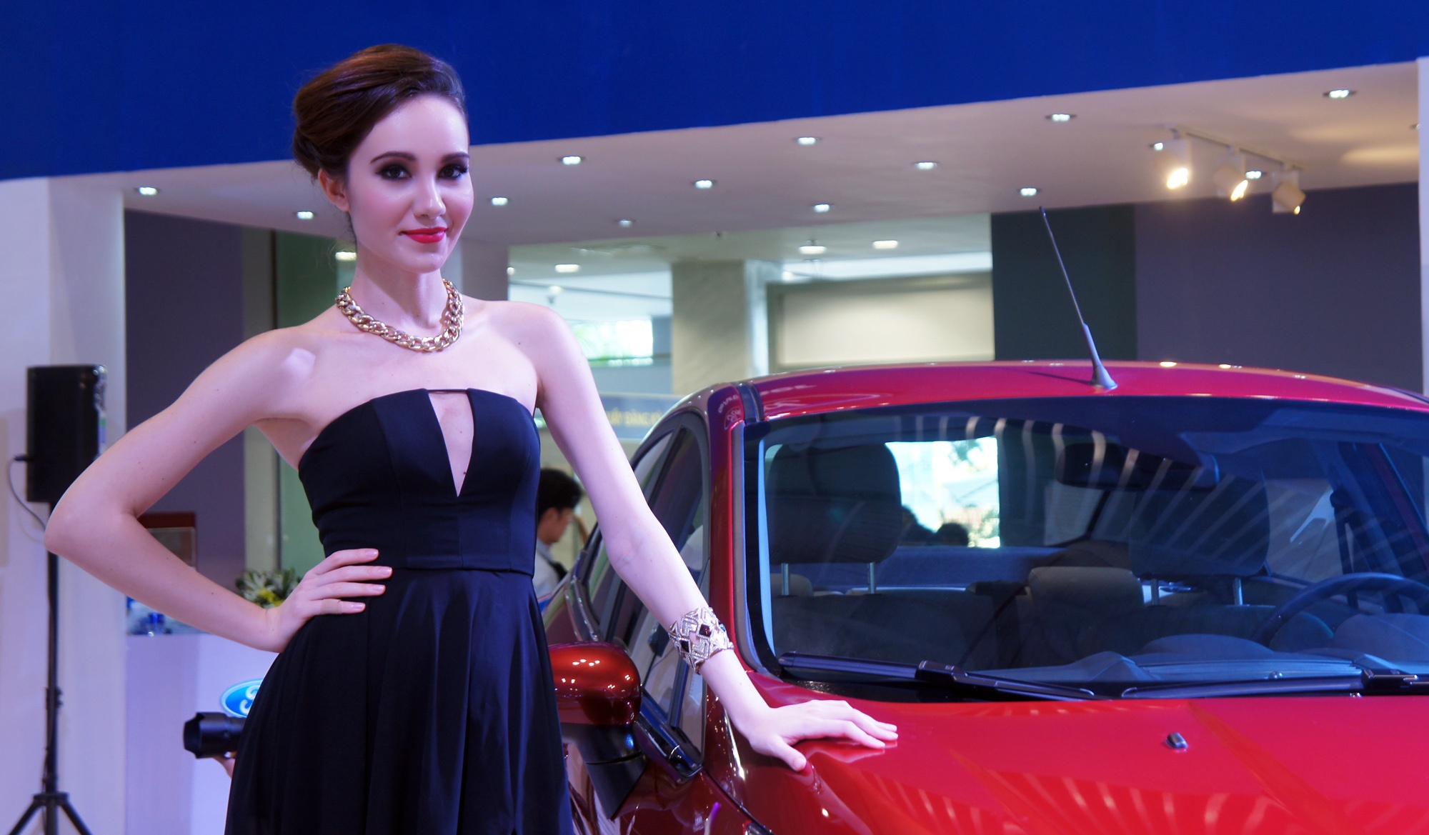 | Gian hàng của Ford có sự xuất hiện của cả người mẫu nội và người mẫu quốc tế. |