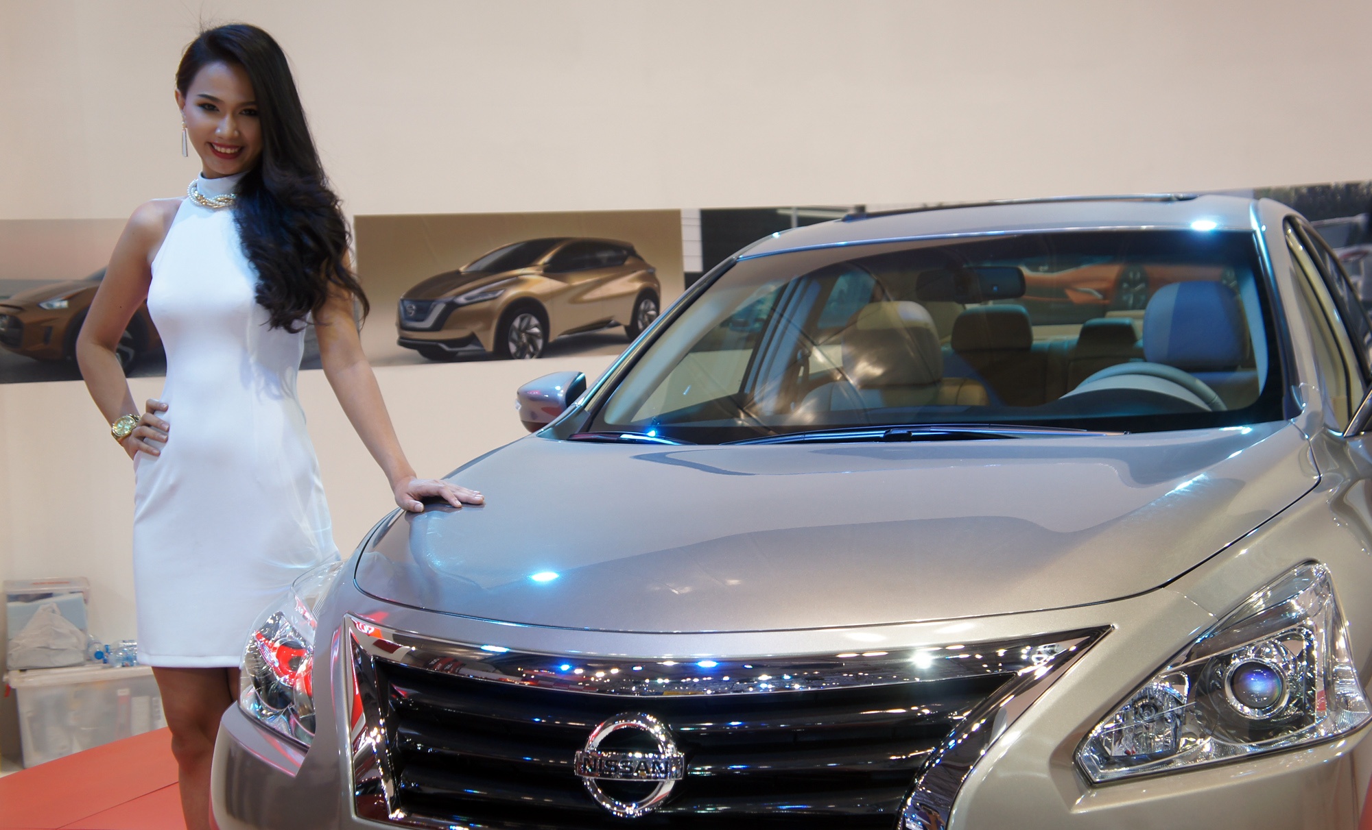 | PG xinh đẹp tại gian hàng của Nissan. |