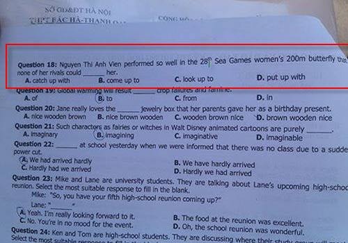 | Câu hỏi về Ánh Viên trong đề thi Tiếng Anh THPT quốc gia. |