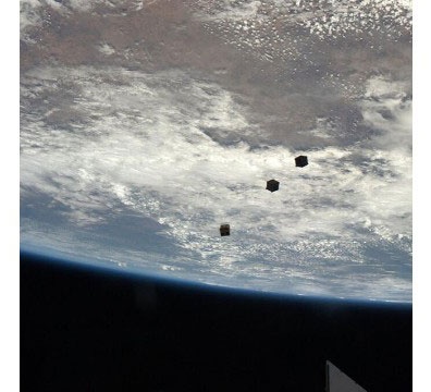 | 3 vệ tinh Cubesats lơ lửng trong không gian sau khi tách ra từ trạm không gian ISS. Ảnh: Nasa |
