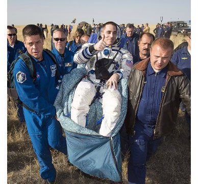 | Nhà du hành Chris Cassidy của Nasa đáp xuống Kazakhstan ngày 11/9/2013 sau khi du hành 5 tháng rưỡi ngoài không gian. Ảnh: Nasa |