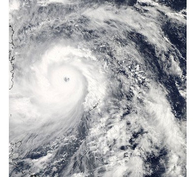 | Vệ tinh Aqua của Nasa chụp siêu bão Haiyan đổ bộ Philippines. Ảnh: Nasa |