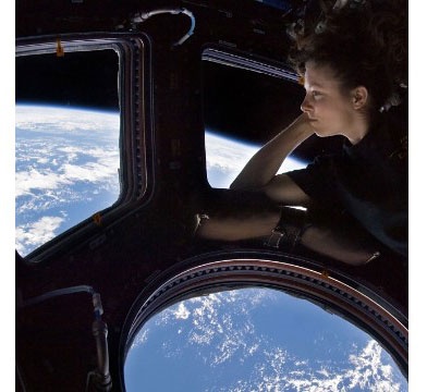 | Nhà du hành Tracy Caldwell Dyson ngồi trong trạm vũ trụ ISS và nhìn xuống trái đất năm 2010. Ảnh: Nasa |