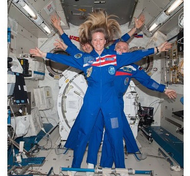 | Nhà du hành vũ trụ của Nasa, Karen Nyberg, chụp ảnh cùng 2 đồng nghiệp Fyodor Yurchikhin (người Nga) và Luca Parmitano (ở Cơ quan Vũ trụ châu Âu). Ảnh: Nasa |