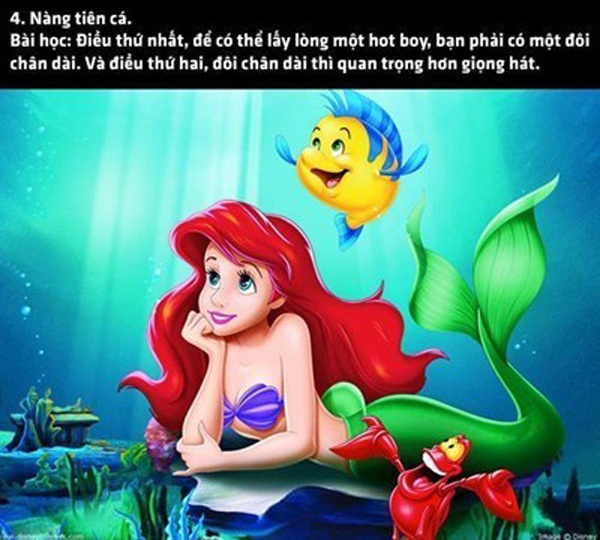 | Dù đẹp như tiên hay có giọng hát như ca sĩ thì tất cả không thể sánh bằng đôi chân dài miên man - bài học rút ra từ câu chuyện Nàng tiên cá. |
