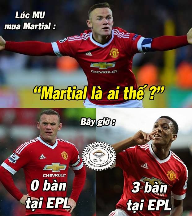 | Rooney từng nói không biết Anthony Martial là ai sau khi MU bỏ ra 36 triệu bảng để chiêu mộ tiền đạo trẻ người Pháp. "Gã Shrek" có lẽ không nghĩ đàn em 19 tuổi lại thi đấu thuyết phục đến vậy. |