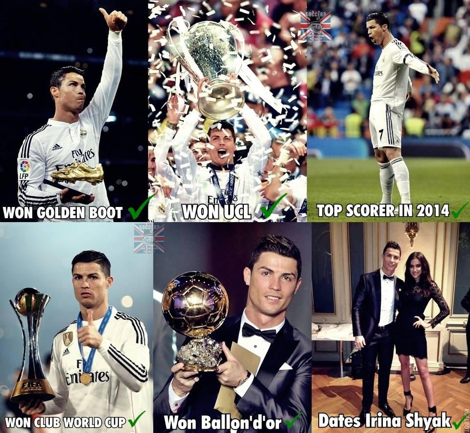 | Những cột mốc cao quý mà Ronaldo đã đạt được trong năm qua, trong đó có việc chiếm trọn trái tim của Irina Shyak. |