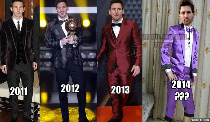 | Thảm họa thời trang của Messi khi đi dự lễ trao giải Quả bóng vàng. |