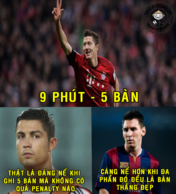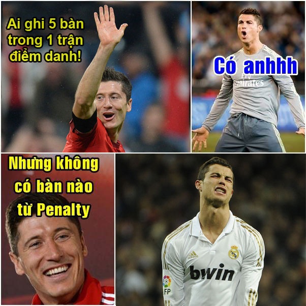 | Trước đó, Ronaldo từng hai lần ghi 5 bàn trong một trận đấu (gặp Espanyol và Granada). Tuy nhiên, những cú re-poker của CR7 đều có những bàn thắng trên chấm 11 m. Trong khi Messi cũng từng ghi 5 bàn vào lưới Bayer Leverkusen tại Champions League 2011/12 nhưng tiền đạo của Barca mất tới 59 phút (từ 25 tới 84). |