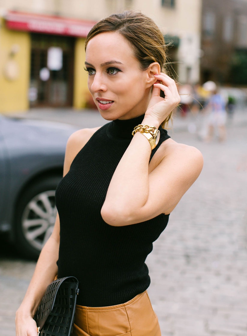 | Nếu cảm thấy mẫu cao cổ hơi nhàm chán, bạn có thể tăng điểm nhấn với một bộ vòng cổ statement. |