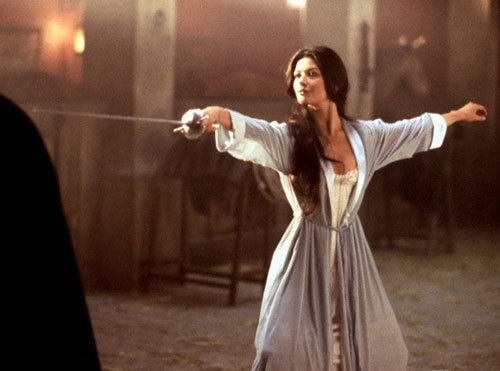 | Khán giả hẳn sẽ nhớ mãi khi khoảnh khắc tuyệt đẹp của Zeta-Jones trong tác phẩm Mặt nạ của Zorro. |