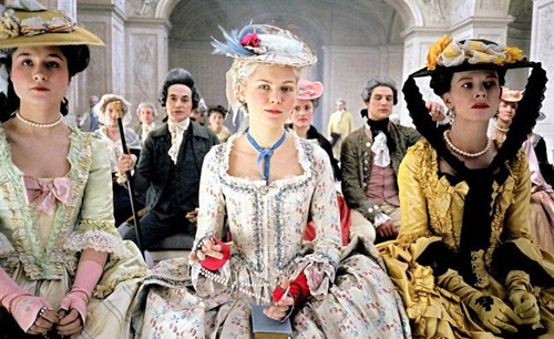 | Tạo hình hoàng hậu nước Pháp trong tác phẩm điện ảnh Marie Antoinette. Các người đẹp ai cũng có lưng ong ngực nở nhờ chiếc áo nịt bó sát. |