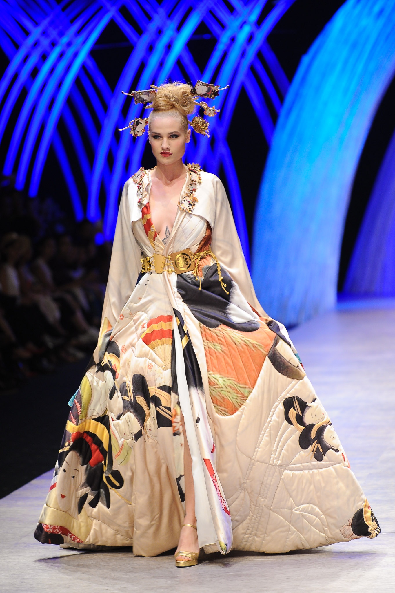 | Một số thiết kế giới thiệu trên sàn diễn Việt mang hơi thở thời trang Nhật Bản. Trong ảnh, Trang Phạm duyên dáng trong bộ cánh hơi hướm áo kimono truyền thống. |