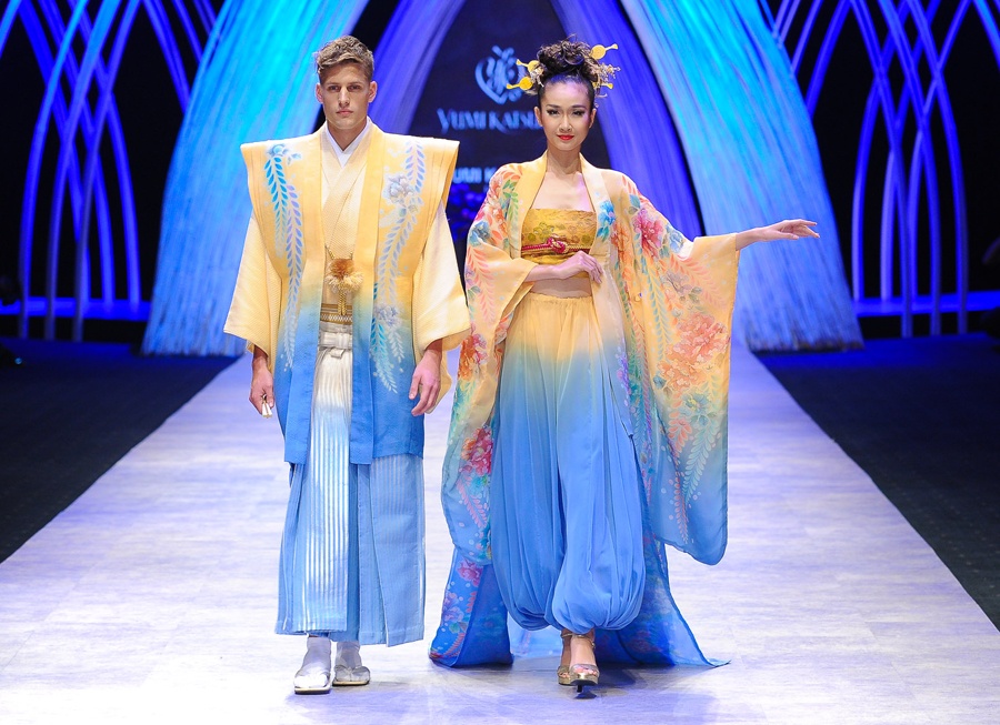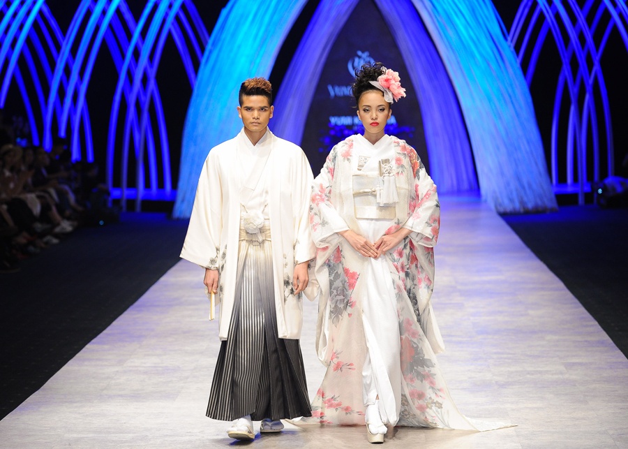 Theo mạch show diễn, các thiết kế áo cưới kimono được giới thiệu ở cuối màn.