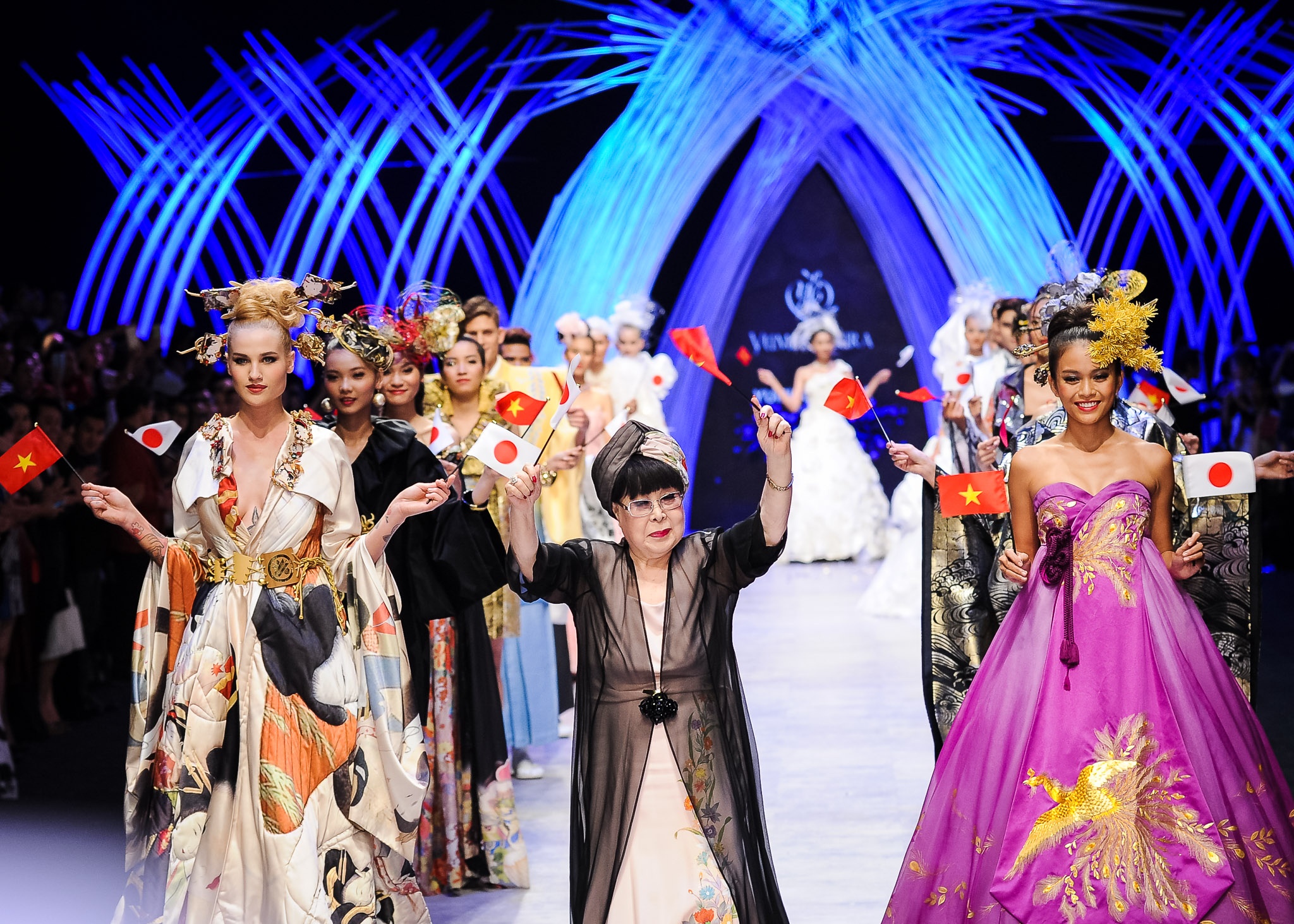Yumi Katsura cùng dàn mẫu chốt màn show thời trang được đầu tư kỹ lưỡng.