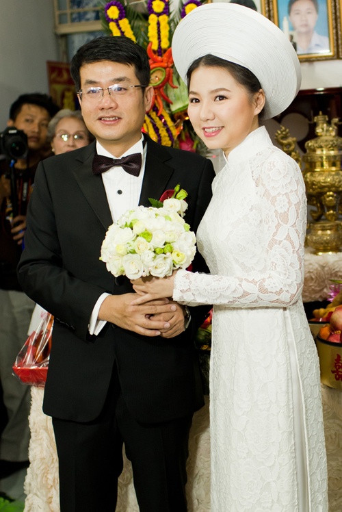 Áo dài cưới gợi cảm của cô dâu showbiz Việt 2014