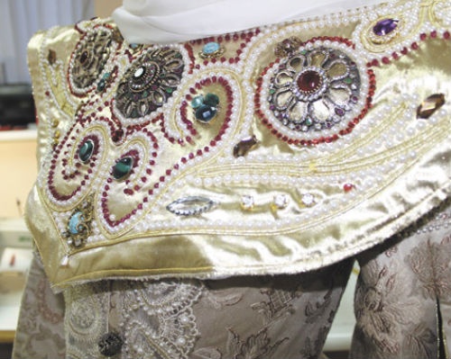 | Cùng nằm trong Top 5 với quốc phục của Trương Thị May là quốc phục đính đá và ngọc nổi bật của Hoa hậu Nga. |