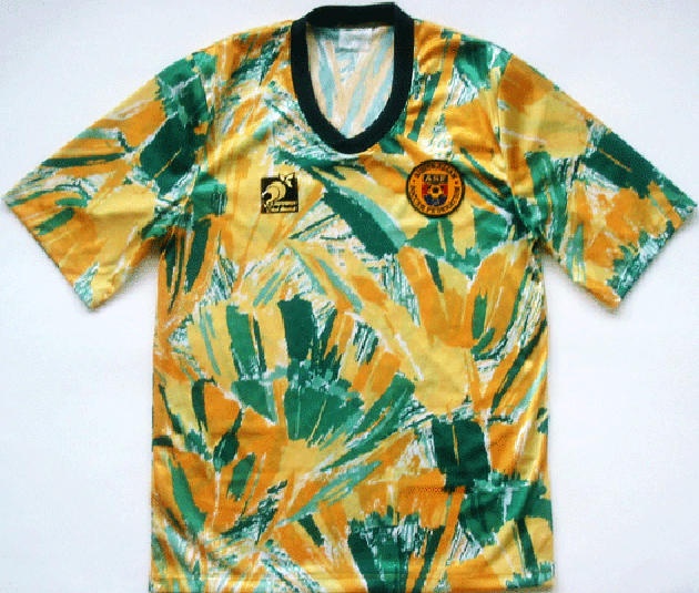Mẫu áo đấu của đội tuyển Australia một thời trông không khác gì một bức tranh trừu tượng.