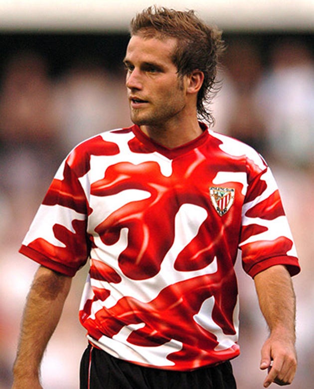 Mẫu áo sân nhà của Athletic Bilbao từng có đợt nhìn như những vết máu loang.