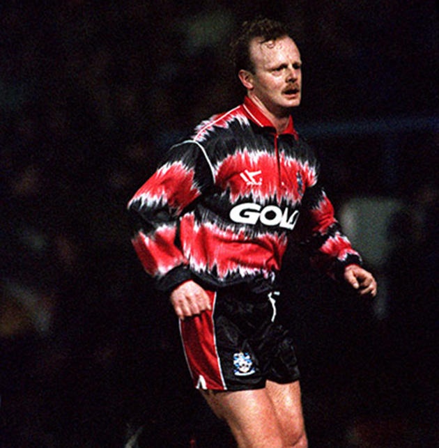 Chiếc áo của CLB Huddersfield Town (Hạng nhất Anh) mùa 1992/93 nhìn như xung điện.