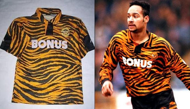 | Đúng với biệt danh "những chú hổ", áo đấu của Hull City một thời từng rất giống với da của hổ. |