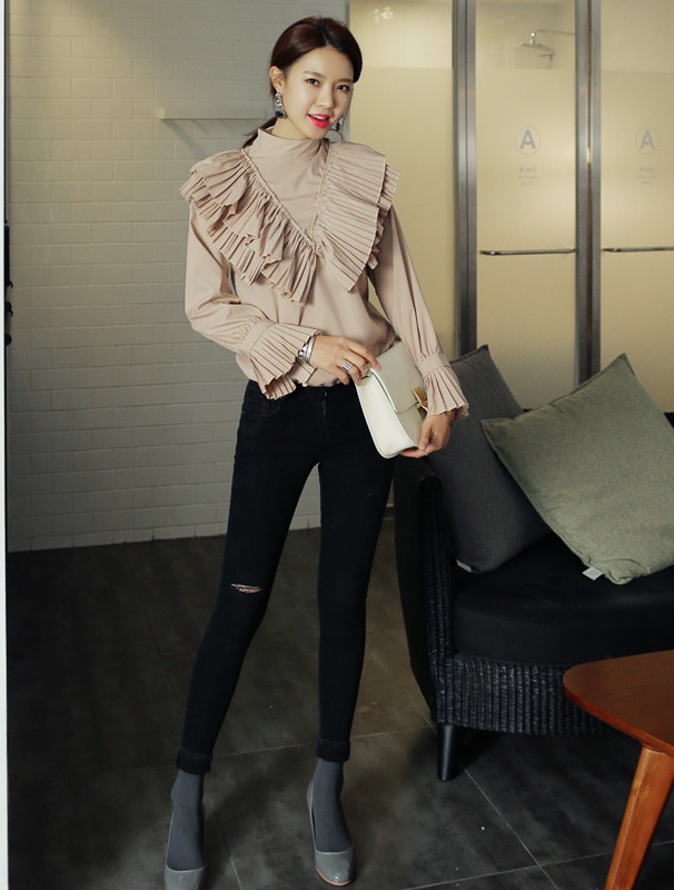 | Để giảm bớt sự diêm dúa của các kiểu áo, bạn nên mix kèm quần jeans đơn giản, màu tối giúp tránh gây rối mắt. |
