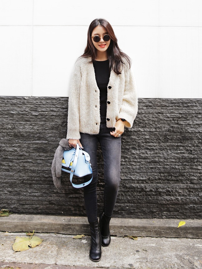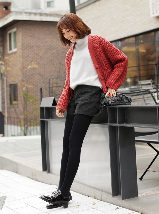 | Gợi ý cách kết hợp rất đáng yêu của quần shorts và áo khoác len lửng. |