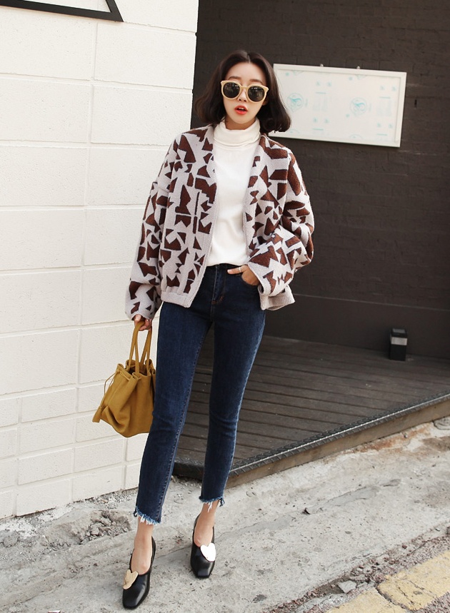 | Làm mới cho mẫu áo khoác len với họa tiết lạ mắt. |