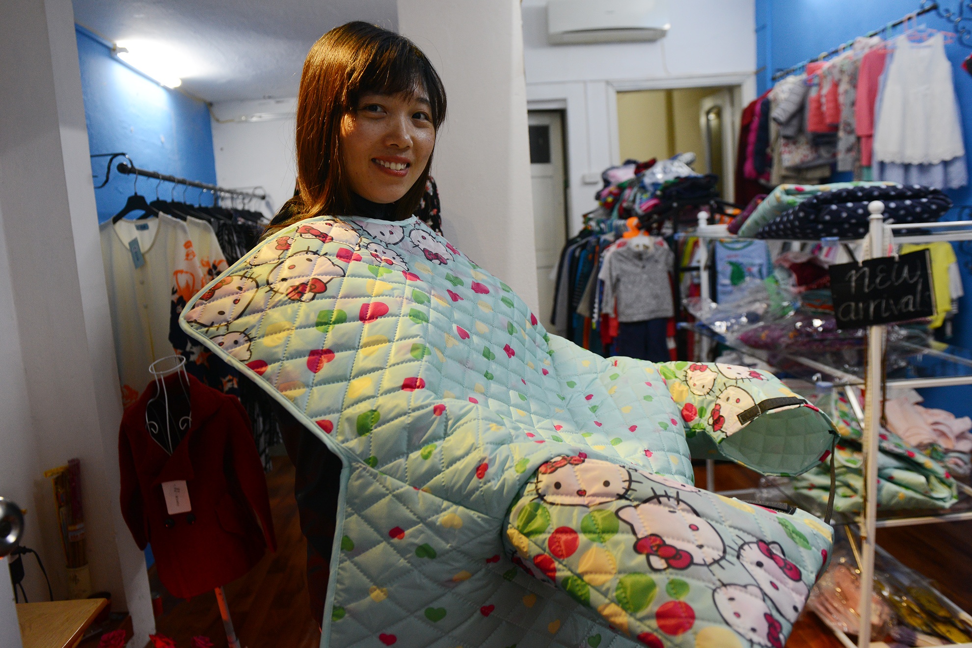 | Theo chị Mai, chủ cửa hàng TomCute shop, chuyên phân phối sản phẩm "áo chống gió", đây là đợt hàng thứ hai về đến Hà Nội. Lượng khách đặt mua lớn hơn rất nhiều so với dự tính. |
