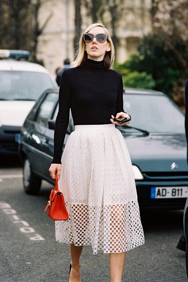 | Áo len cao cổ mix kèm váy midi là xu hướng rất hợp với thu đông năm nay. |