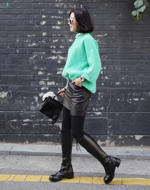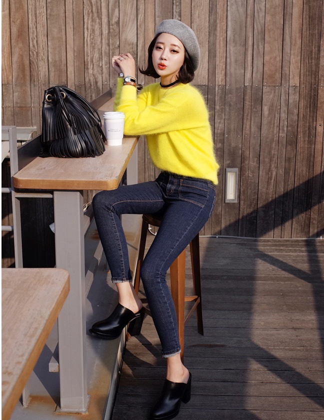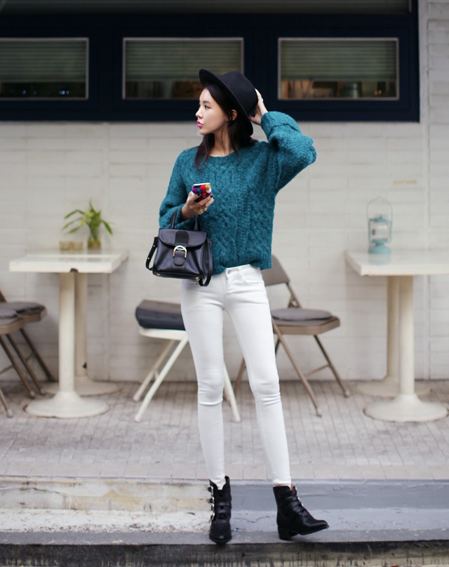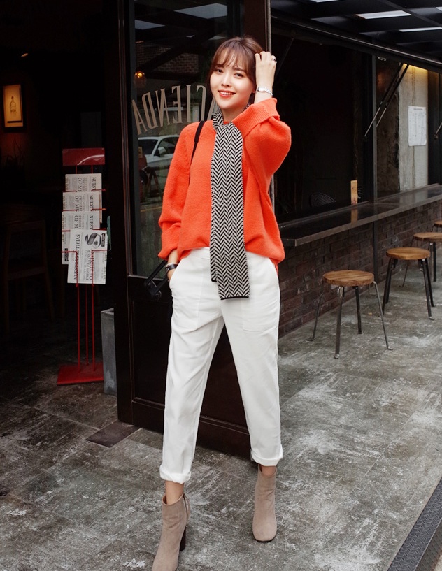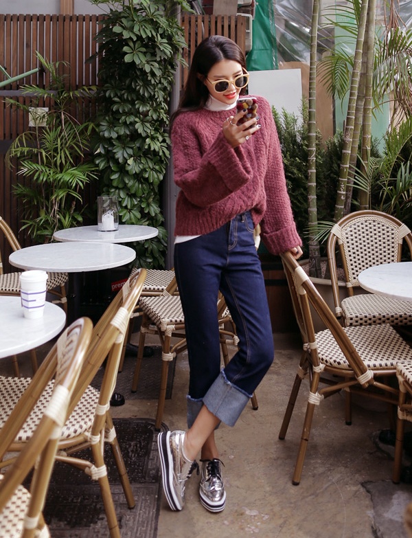 | Áo len lông với tông màu rực rỡ vẫn là lựa chọn của nhiều cô gái Hàn. |