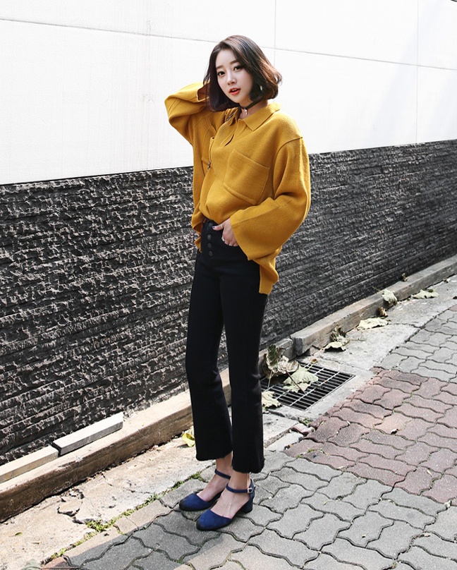 | Áo len với biến tấu cổ bẻ lạ mắt cho những ai ưa thích sự mới mẻ. |