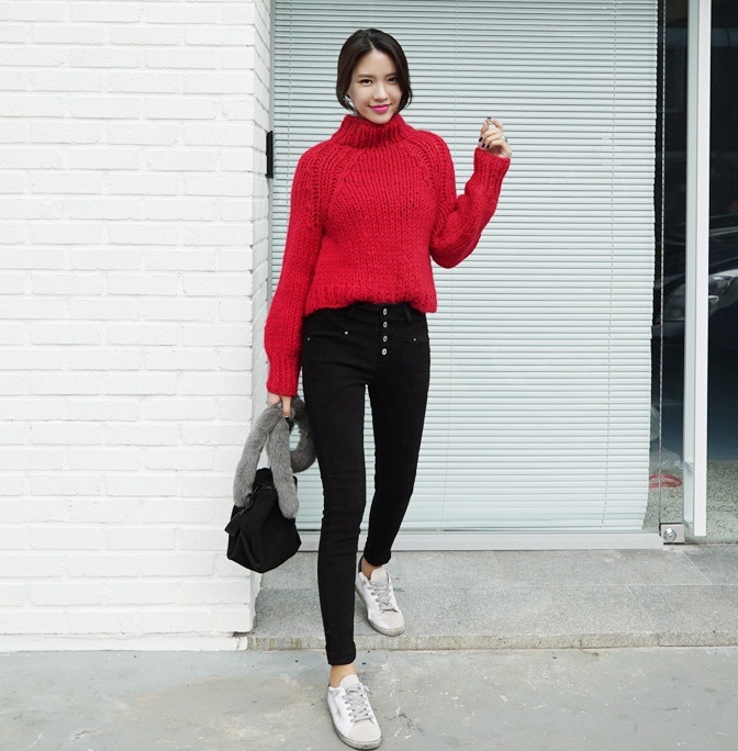 | Áo len đỏ đậm chất cổ điển vẫn luôn được ưa thích khi trời chuyển mùa. |