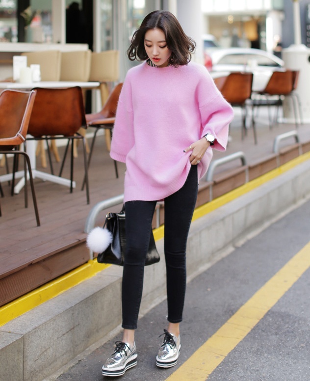 | Bạn có thể kết hợp các mẫu áo len dáng rộng với quần skinny để tạo nên phong cách đối lập. |