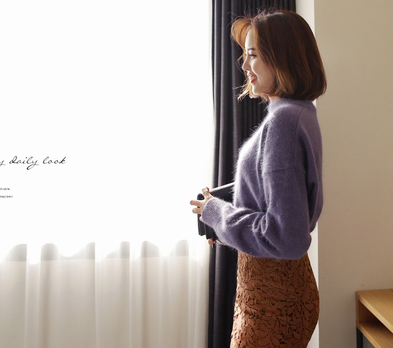 | Áo len lông xù thích hợp với vóc dáng mảnh mai có thể kết hợp cùng chân váy bút chì khi tới công sở. |