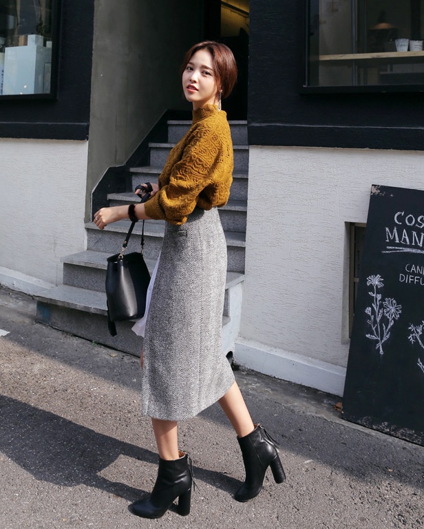 | Áo len cánh dơi mix kèm váy bút chì sang trọng và thanh lịch. |