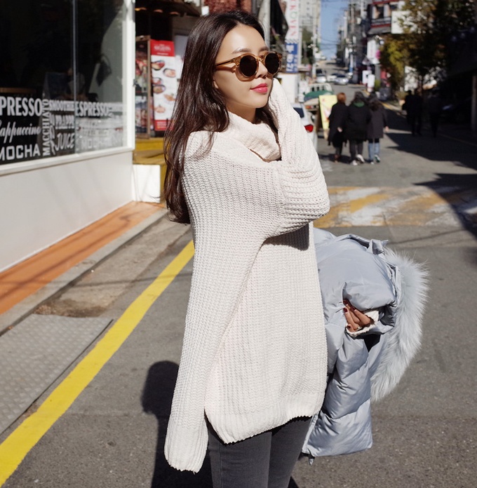 | Chất liệu dày dặn của các mẫu áo len xẻ chính là bí quyết giúp bạn gái ấm áp hơn trong ngày lạnh. |