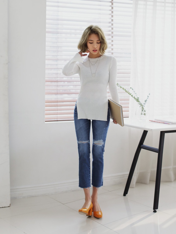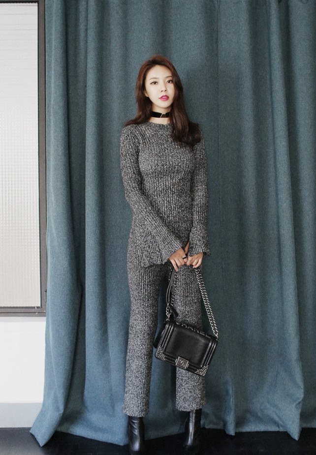| Kết hợp áo len xẻ với quần đồng bộ đang là xu hướng hot. |