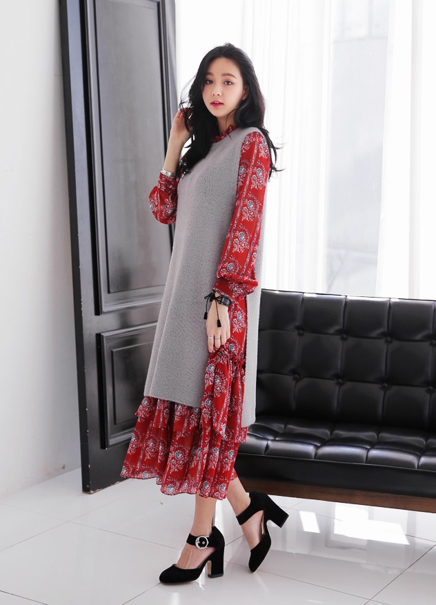 | Gợi ý kết hợp áo len xẻ với váy xòe midi duyên dáng. |
