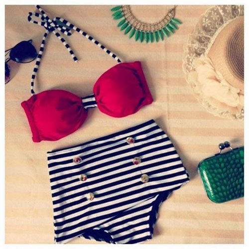 Những bộ áo tắm được phối màu sắc hài hòa giữa áo và quần sẽ giúp bạn nổi bật giữa bãi biển.