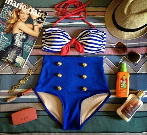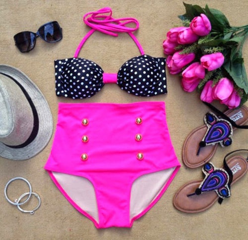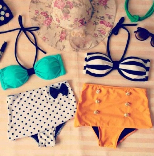 Áo tắm càng màu sắc càng bắt mắt vì thế bạn cũng không cần phải quá khắt khe trong việc lựa chọn màu sắc giữa áo và quần. Đôi khi những gam màu tưởng chừng như không liên quan đến nhau vẫn có thể làm nên một bộ áo tắm mismatched rất thời trang.