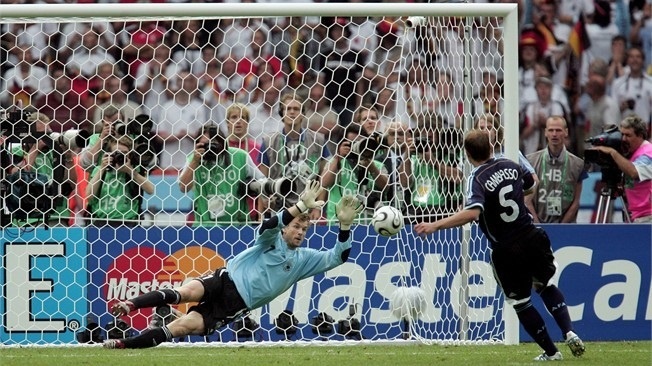 Giải đấu được tổ chức trên đất Đức đã chứng kiến thêm một nỗi thất vọng luân lưu khác của Argentina. Sau 120 phút bất phân thắng bại, hai đội dắt nhau vào loạt sút luân lưu. Và ở lĩnh vực này, người Đức là chuyên gia. Bản lĩnh vững vàng, sự tự tin cao độ cùng với sự ủng hộ của khán giả nhà đã giúp các cầu thủ Đức thực hiện thành công tất cả loạt sút của họ. Còn bên phía Argentina, Roberto Ayala và Cambiasso đã thực sự bị “cóng”. Chung cuộc, Argentina thua 2-4.