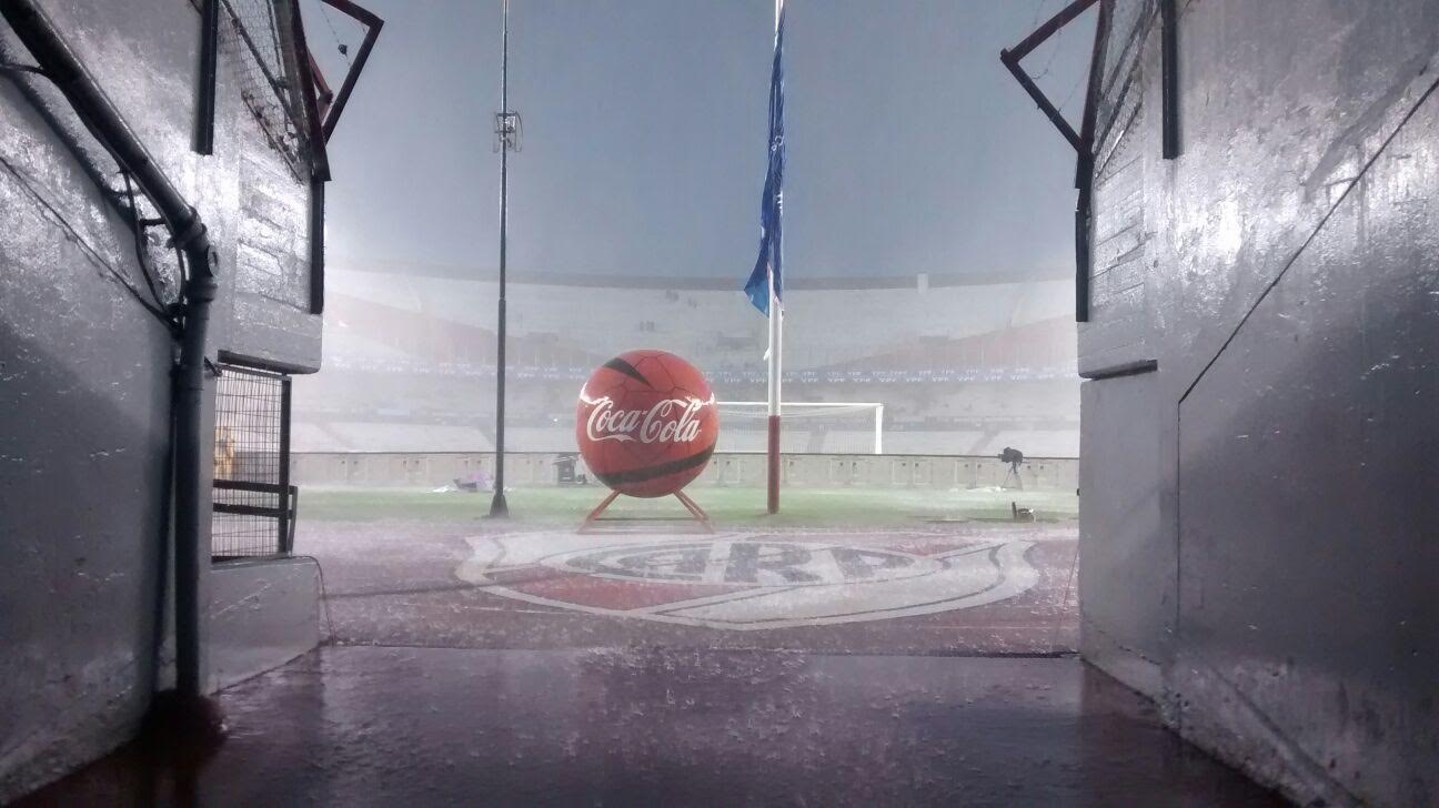 Theo thông tin trên Goal, một cơn mưa lớn đã trút xuống thủ đô Buenos Aires khiến sân Monumental chìm trong nước. Phó chủ tịch Liên đoàn bóng đá Argentina, ông Claudio 'Chiqui' Tapia thông báo trận đấu có tới 99% bị hoãn lại, trước khi hai đội tới sân.
